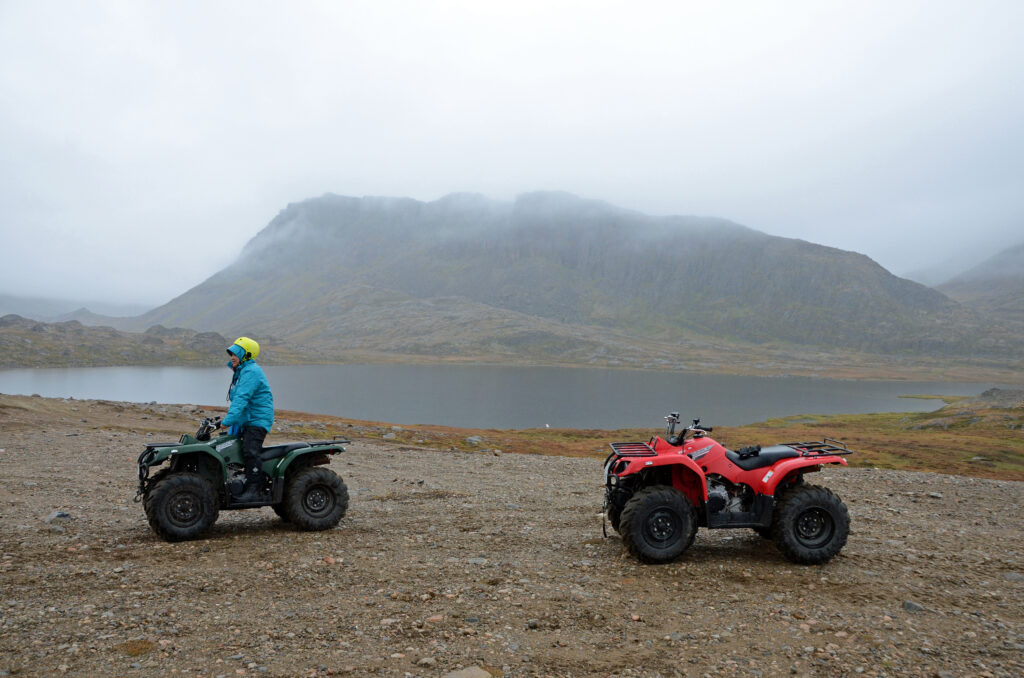 In Nuuk, der Hauptstadt Grönlands, kehrt die „SH Vega“ in die Zivilisation zurück. Mit rund 19.500 Einwohnern gilt Nuuk in den Augen der Grönländer als „Großstadt“. Schön ist die alte, farbenfrohe Kolonialgegend, in der auch das Nationalmuseum liegt. Viel interessanter finden wir jedoch den Stopp am nächsten Tag: Sisimiut. Abenteuerlustige lieben die Gegend vor allem im Winter, wenn man Hundeschlittentouren im Schnee unternehmen kann. Außerdem findet dann mit dem Arctic Circle Race das härteste Skilanglaufrennen der Welt statt. Jetzt im September liegt natürlich noch kein Schnee, deswegen erkunden wir die Gegend mit ATVs. Hintereinander geht’s mit den vierrädrigen Motorrädern in die Einsamkeit.