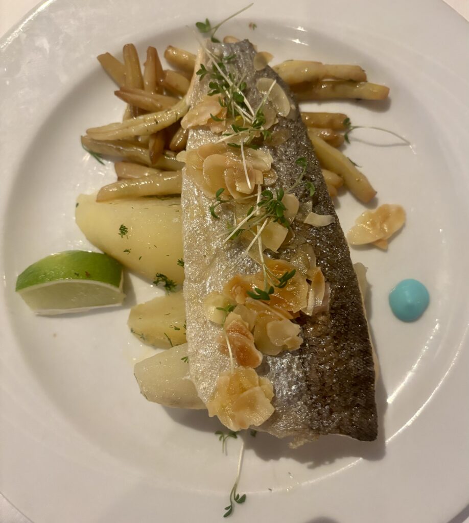 Im Salon werden auch ein Frühaufsteher-Frühstück und ein leichtes Mittagessen serviert. Das reichhaltige Morgenbuffet und jeweils mehrgängiges Mittag- und Abendessen gibt es im Restaurant im Heck des Schiffs. Mediterrane Küche mit regionalen Saisonprodukten dominiert, mit viel Fisch, aber es gibt auch Fleischgerichte sowie vegetarische und auf Wunsch vegane Alternativen. Jeden Nachmittag wird Kaffee und Tee serviert. Wer mag, kann sich vom Kuchenbuffet im Salon ein Stück auswählen und mit nach oben an Deck nehmen. Man sitzt an kleinen Tischen zusammen und genießt den Ausblick: ein grüner Streifen Bäume und Büsche an beiden Ufern, dahinter goldgelber Acker und Weinberge, am Horizont Hügelketten, Kalksteinwände und bizarre Felsformationen. Das Schiff zieht eine weiße Gischtspur hinter sich her, man spürt den Fahrtwind auf der Haut und in den Haaren.