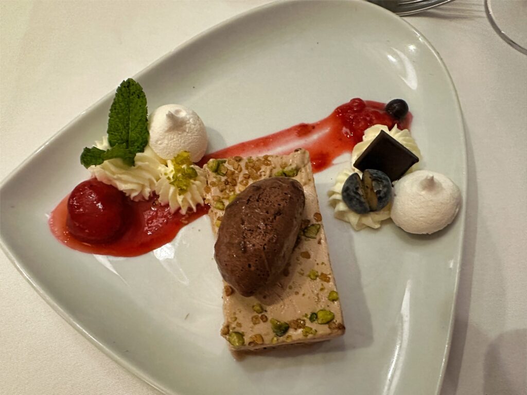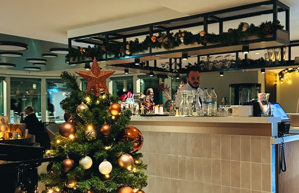 Nach einem Begrüßungscocktail in der weihnachtlich geschmückten Panorama Lounge lädt Hotelmanager Sandor Csonka zum Willkommens-Abendessen ins Restaurant ein. Wer rechtzeitig reserviert hat, bekommt auch noch einen Platz im italienischen Restaurant am Heck. Dort gibt es mittags Pastagerichte und abends Pizza – immer mit einem fantastischen Ausblick nach draußen auf den Rhein.