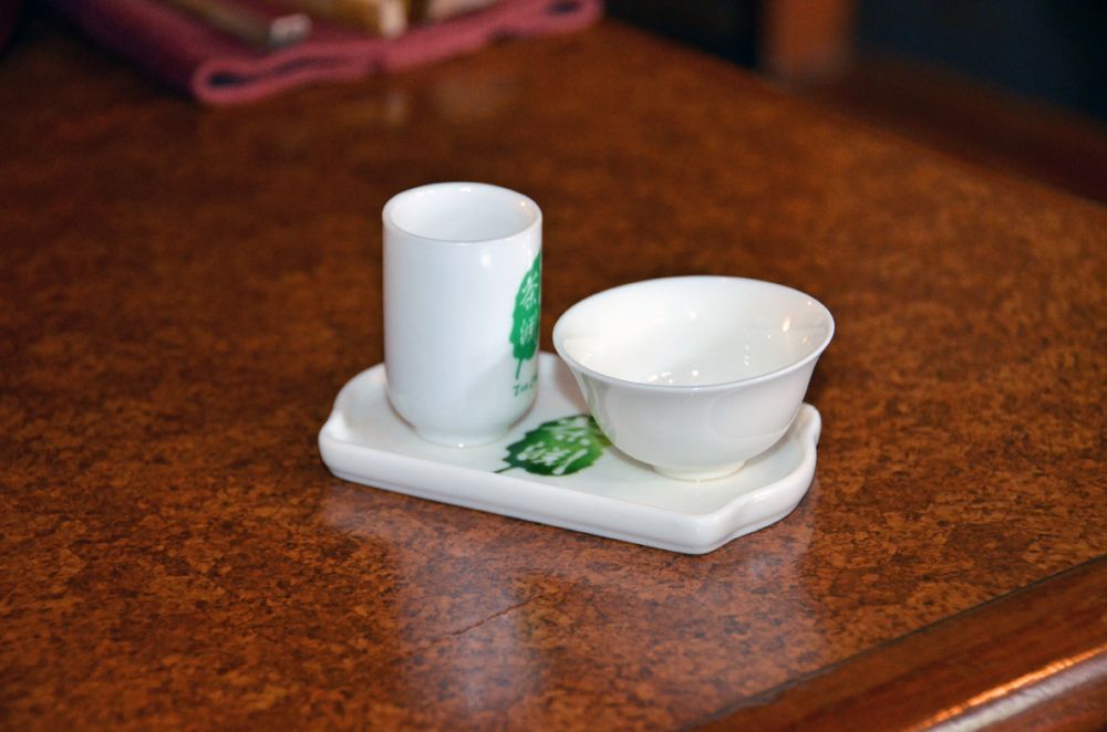 Der Tee-Meister gießt den Tee in eine Art winzige Eierbecher. Dann dürfen wir schnuppern. Schließlich schütten wir ihn in eine kleine Schale um. Nun reiben wir die Eierbecher zwischen den Händen und atmen noch einmal das Aroma ein. Jetzt riecht es deutlich süßer. Schließlich wird der Tee in drei kleinen Schlucken getrunken.